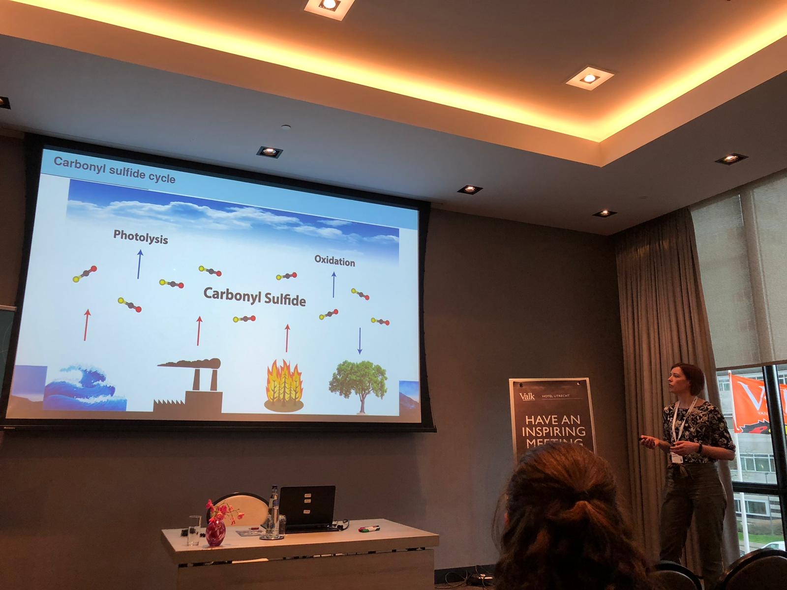 Sophie Baartman presenting her system that can measure sulfur isotopes from carbonyl sulfide (COS)
