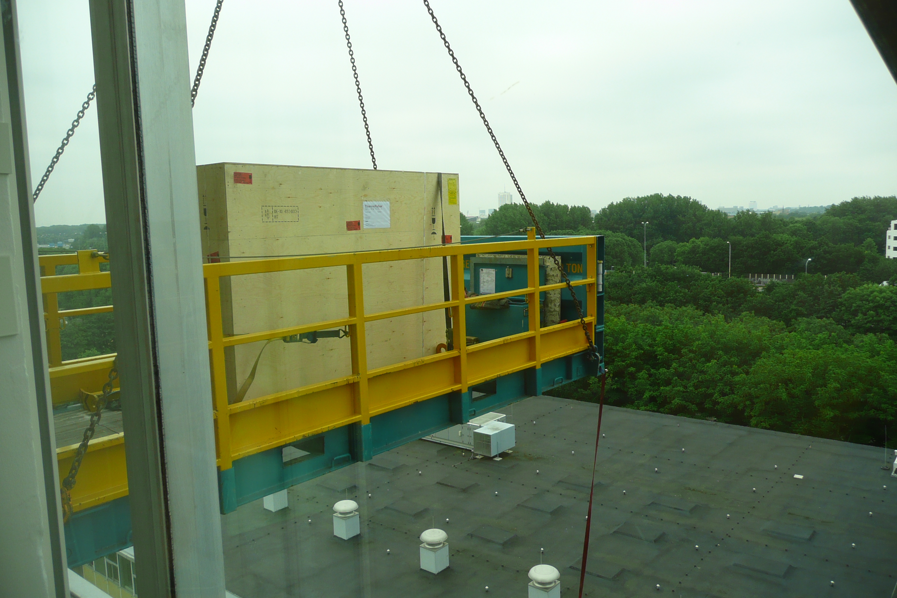 Being raised by a crane to the sixth floor and entering through a window, the new isotope mass spectrometer Mat Ultra made a spectacular first appearance at the Uithof. This new addition to our labs was developed in California and it is only the third instrument worldwide to be installed and set up ready for use.
